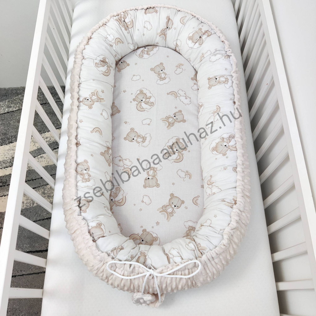 Deluxe Baby többfunkciós babafészek - Minky mogyoró - felhőn alvó macikák