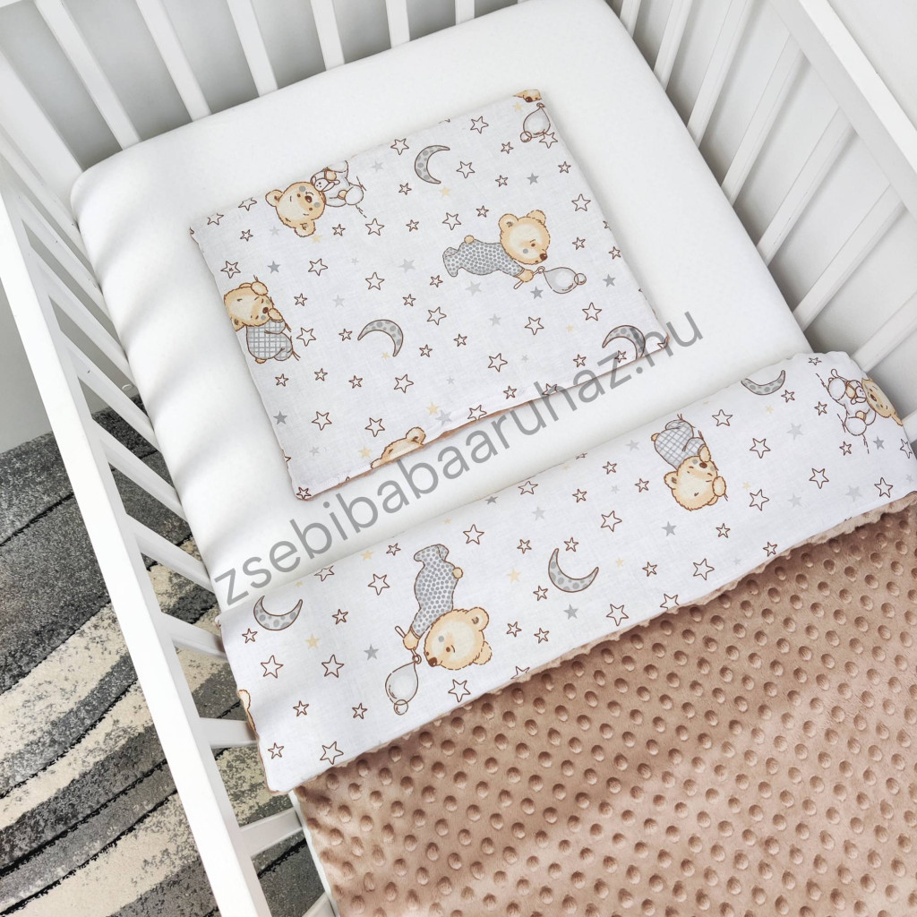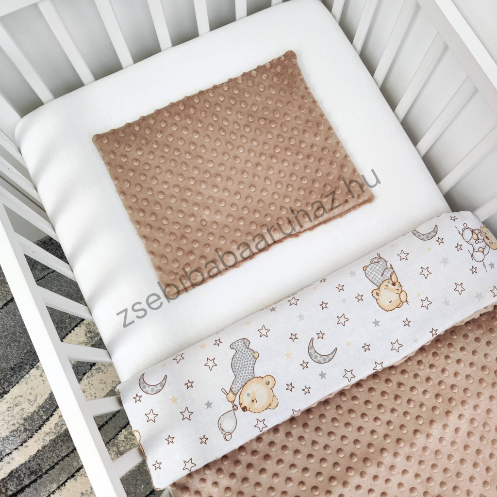Deluxe Baby 2 részes babaágynemű garnitúra - takaró + párna - cappuccino - cuki macik