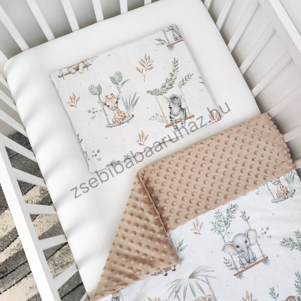 Deluxe Baby 2 részes babaágynemű garnitúra - takaró + párna - cappuccino - szavanna kölykök