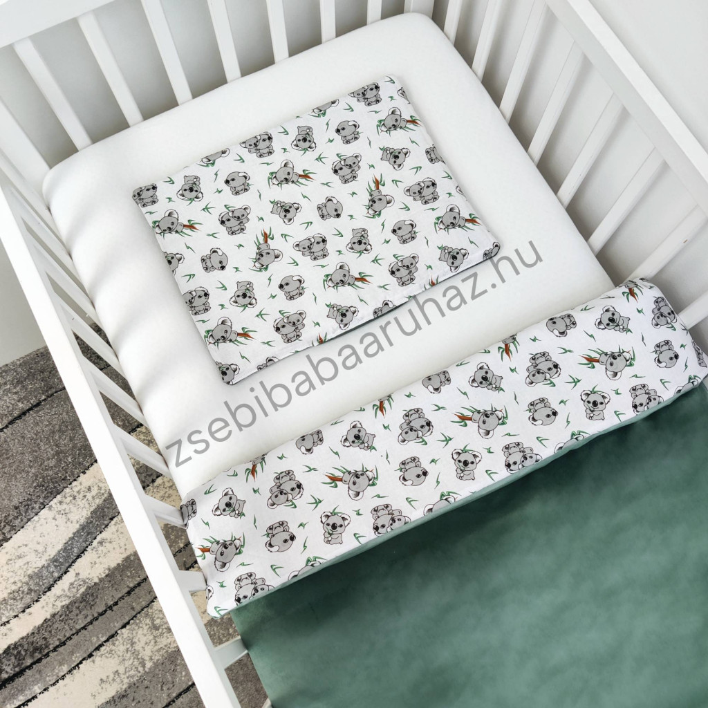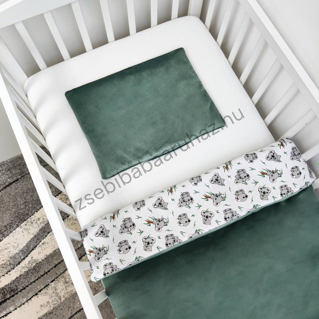 Deluxe Baby 2 részes babaágynemű garnitúra - takaró + párna - zöld bársony - koalák